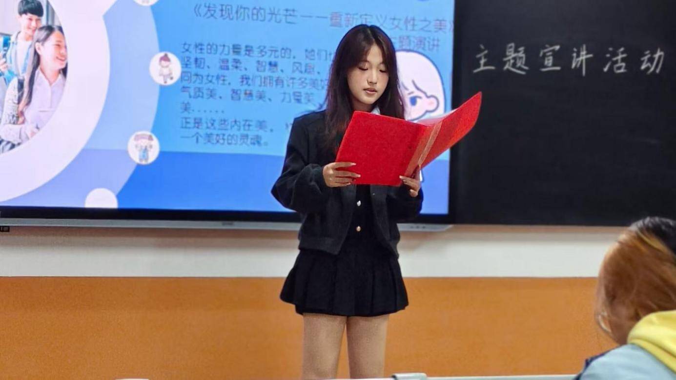 第三环节由部门成员带来题为《发现你的光芒——重新定义女性之美》的总结演讲。演讲围绕打破单一审美标准、探讨气质美、智慧美、力量美、健康美等多元化内涵展开,引导同学们关注自身独特的气质与内在价值,树立健康、积极的审美观念。