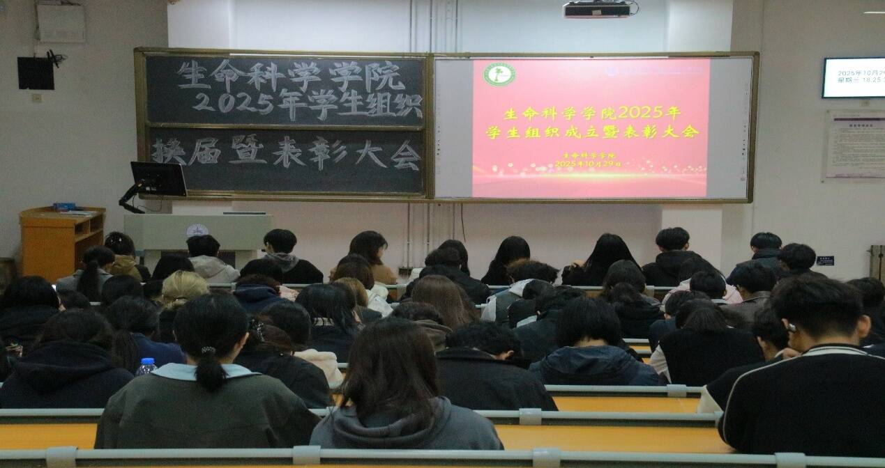 传承过往荣光,表彰榜样力量,接力青春使命!10月29日,生命科学学院2025年学生组织换届暨表彰大会在教学南楼C2002隆重举行。学院辅导员段赵洋、陈玲慧老师与全体学生组织成员齐聚一堂,共同见证了这场承前启后的青春盛会。