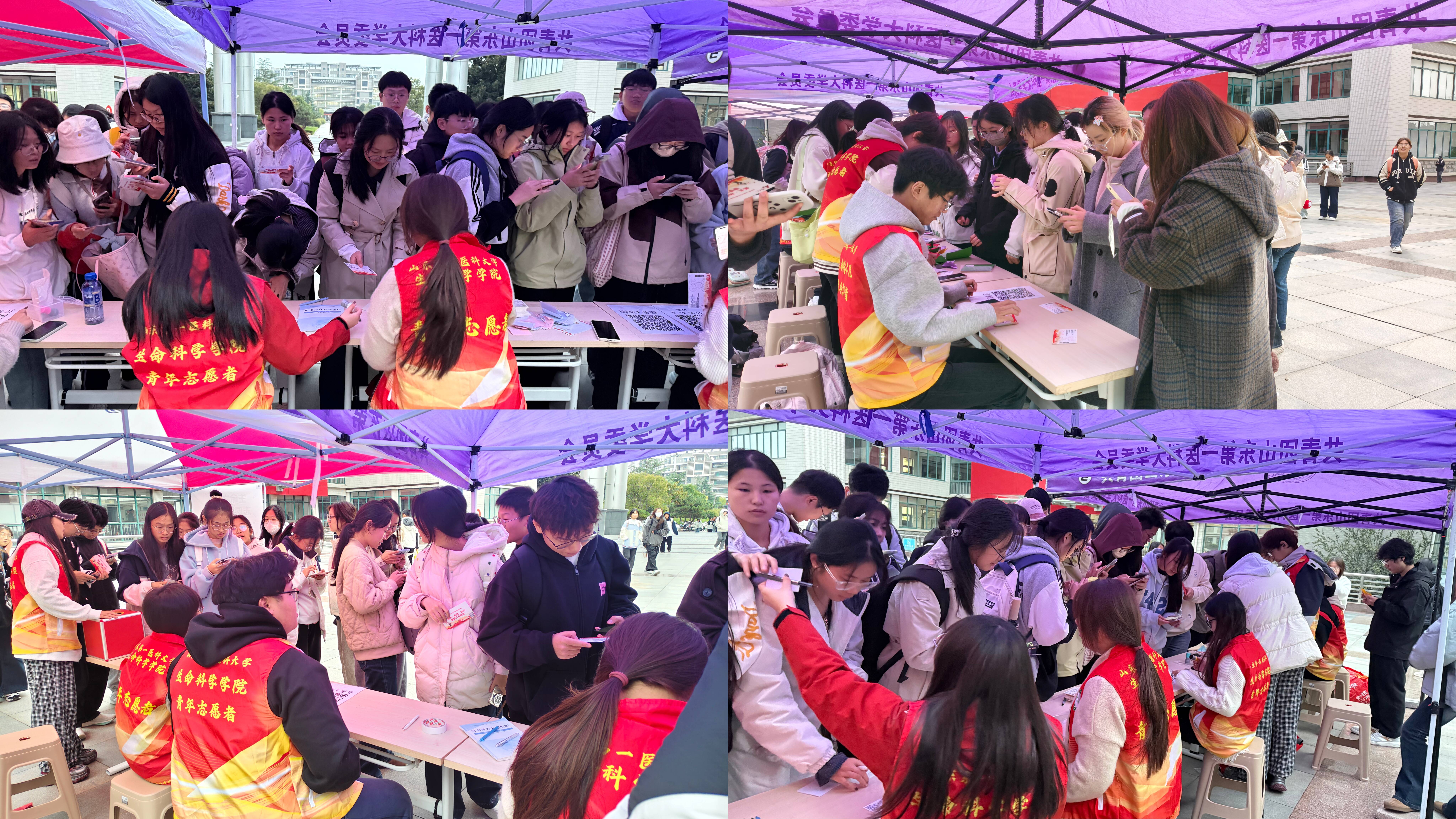 活动筹备阶段,志愿服务队精心规划流程、合理划分任务小组,各小组分工明确、协同高效。活动现场,志愿者们热情细致地为参与同学讲解打卡规则与活动意义,充分调动了同学们的参与积极性,现场氛围热烈有序。