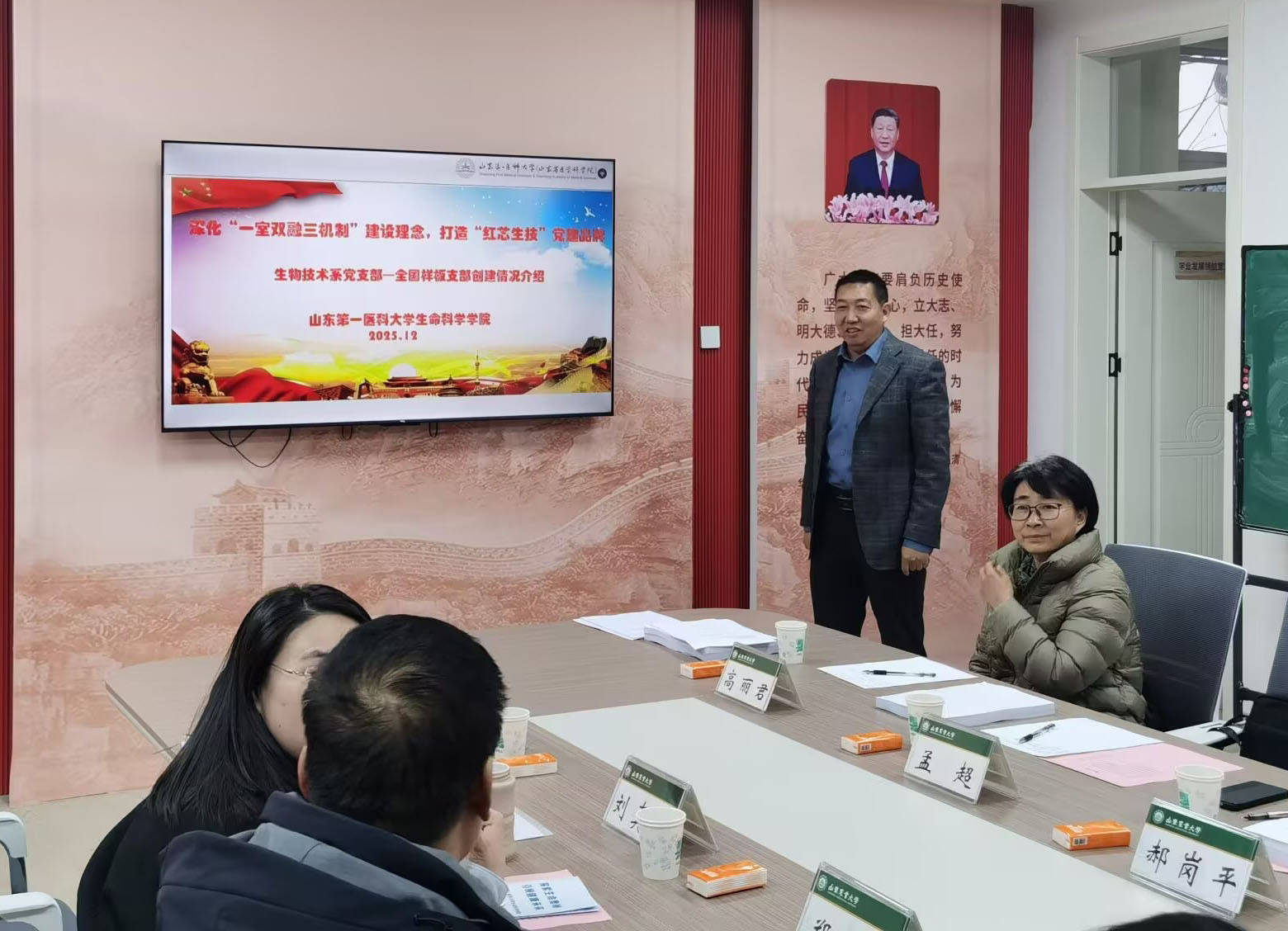 为增进全国样板支部建设工作经验、推动党建工作深入发展,12月18日,由学院郝岗平书记带领生物技术系党支部成员,赴山东农业大学资源与环境学院交流党建工作。资源与环境学院郑峰书记、刘真真副书记、环境科学与工程系党支部书记杜仲坤、组织员王鸽等教师参加党建共建会议。