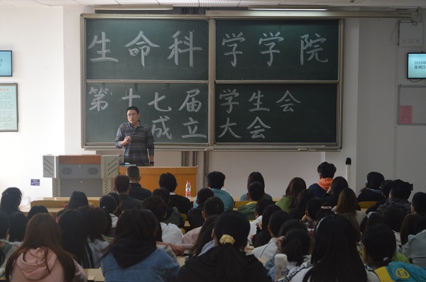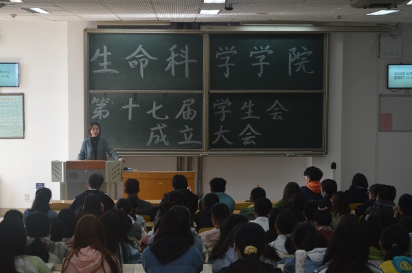10月22日,生命科学学院于教学南楼C2001举办第十七届学生会成立大会,生命科学学院党总支副书记张岳,团总支刘兆玺老师、辅导员卢静老师及第十七届学生会全体成员参加本次会议。