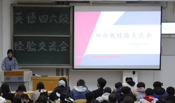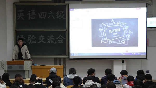 为了帮助同学们迎接即将到来的英语四、六级考试,增加同学们的考试信心,10月25日晚,生命科学学院在教学南楼C2001举办了英语四六级经验交流会。会议邀请了王淼、徐宇琛和于天姿等七位优秀学生代表上台进行经验总结,2019级全体同学参加此次交流会。