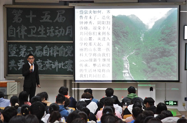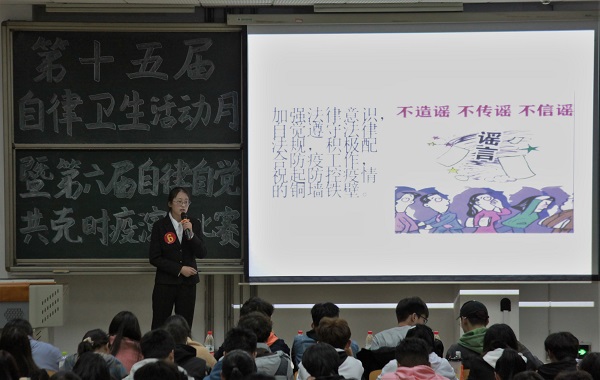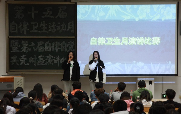 新冠疫情来势汹汹,为提高同学们的自我保护意识,养成良好的生活卫生习惯,培养家国情怀,11月1日晚,生科院于教学南楼C2002举办第十五届“自律卫生活动月”开幕式暨第六届“自律自觉,共克时疫”演讲比赛系列活动,2020级新生和生科院学生会全体成员参加了本次活动。