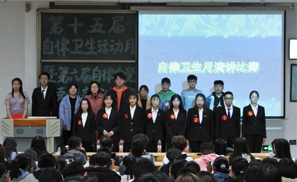 首先,大会开展了“校园低碳出行,拒绝电车事故”倡议书的签名活动,坚定了同学们消除电车事故安全隐患的决心。接着,生活卫生部和自律部代表分别上台宣读了卫生与纪律的检查标准。随后,各位参赛选手依次上台发表了演讲。他们用最真实的故事、最贴近现实的事例,慷慨激昂地向我们展示了疫情之下英勇无畏的中国人民,同时生动形象地向我们阐释搞好自律卫生的重要意义。最终麻小丽、韩梦蓥同学凭借清晰明了的演示内容、张弛有度的演讲把控获得一等奖,孙越、李梦瑶同学表现突出,获得二等奖,吕甫晋、薛俊红、段成玉、徐晓宇同学获得三等奖。