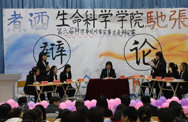 为开阔学生思维,锻炼其语言表达能力,培养同学们的团队默契以及团结协助能力,11月15日,生命科学学院于物理楼报告厅举办第六届“辩世事,论时事,实事求是”辩论赛。经过初赛和复赛的选拔,来自基础医学院、药学院、医药管理学院、生命科学学院、恒言社、放射学院的六支队伍以优异的表现进入本次决赛。