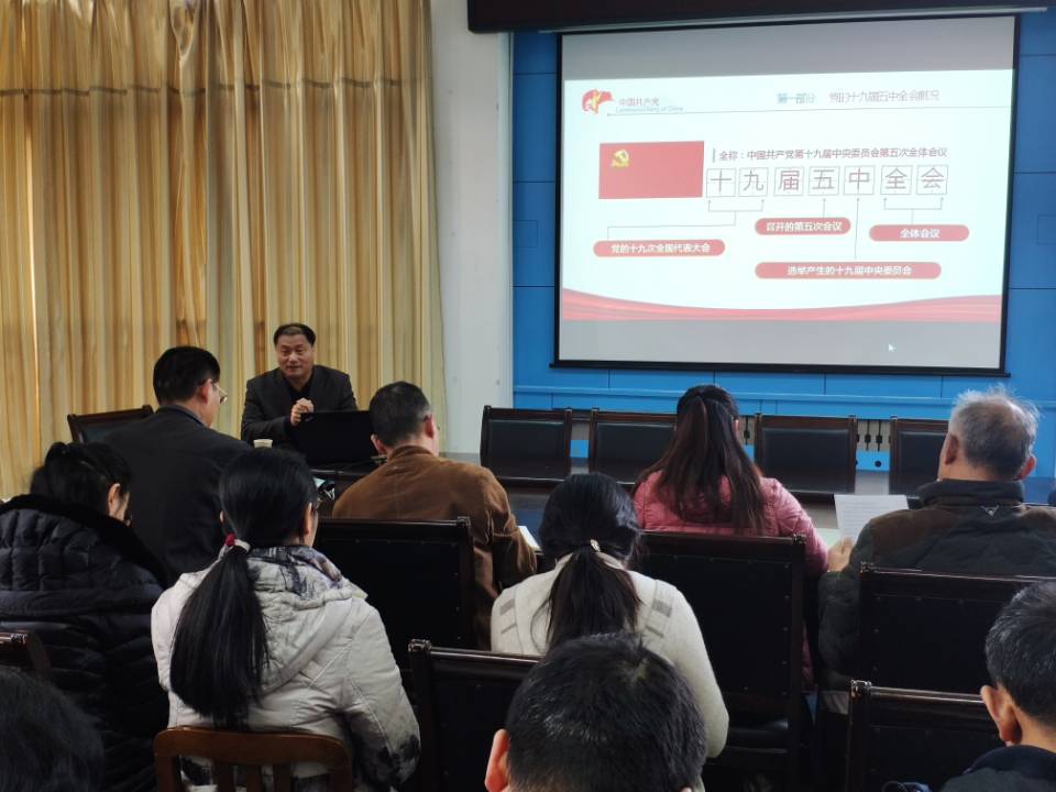 曹斌同志指出宣讲会讲解透彻精彩,师生党员受益匪浅,我们要以此次宣讲会为契机,各党支部、各科室、各青年理论学习小组要认真组织好学习十九届五中全会精神,把握新阶段、新理念、新格局,在教学实践中全面贯彻宣传全会精神。