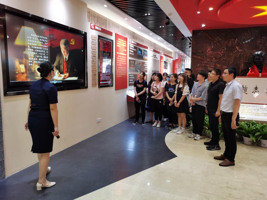第二站到达新时代药业公司。同志们参观了新时代展厅、厂区及赵志全同志纪念馆,了解了新时代制药的科研成果及企业文化,充分感受到了“时代楷模”共产党员赵志全同志全心全意为人民服务的精神。