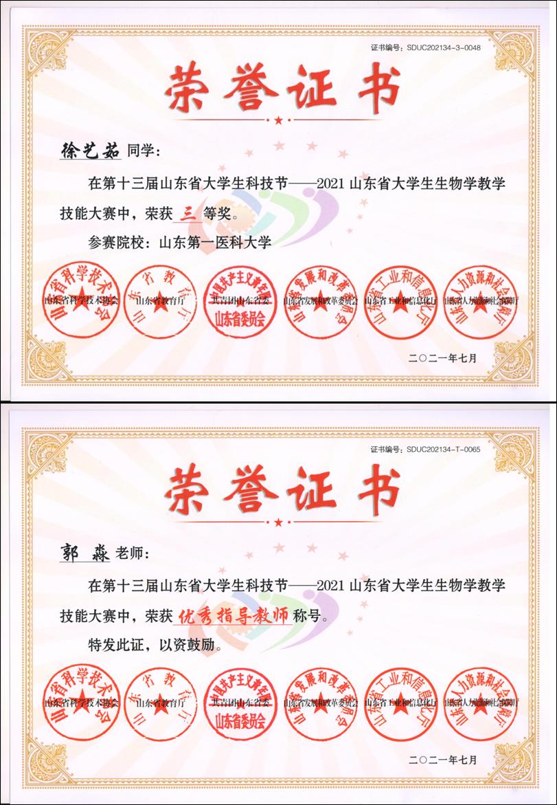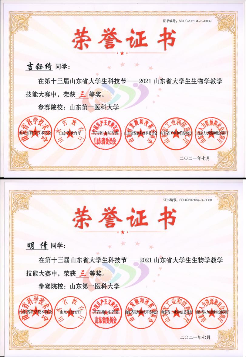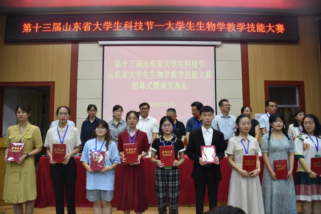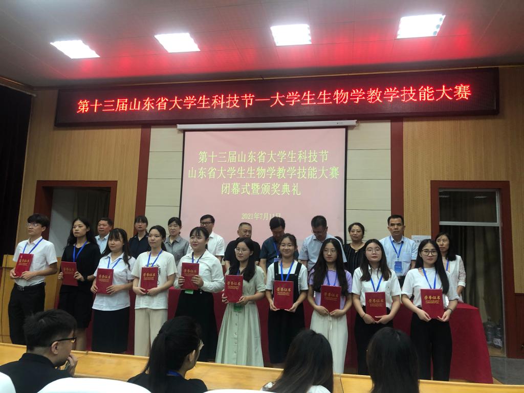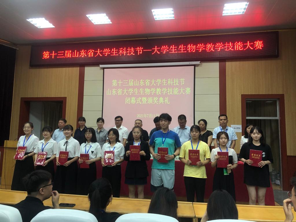 7月9日-11日,第十三届山东省大学生科技节--山东省大学生生物学教学技能大赛在鲁东大学北校区举行,经说课、模拟授课、评议等,我院选手在决赛中获得本次大赛一等奖1项,三等奖4项,1名老师荣获优秀指导老师称号,我校获得优秀组织奖。
