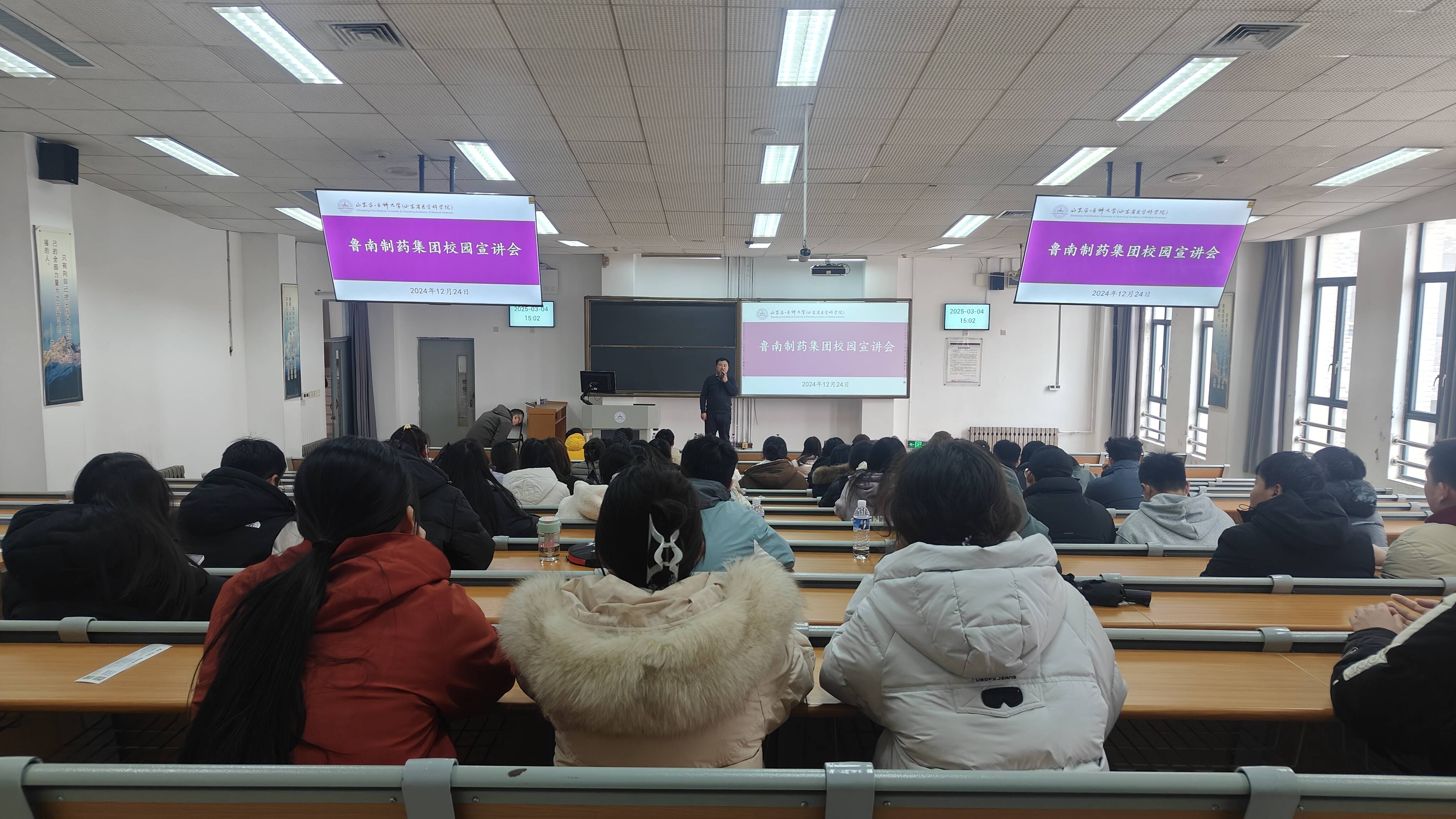 为深入学习党的二十届三中全会精神,贯彻落实党中央、国务院关于高校毕业生就业工作的决策部署,加强毕业生就业指导和就业服务。3月4日,鲁南制药受邀在教学南楼C2002举办校园宣讲会,吸引了众多学子的热切关注。