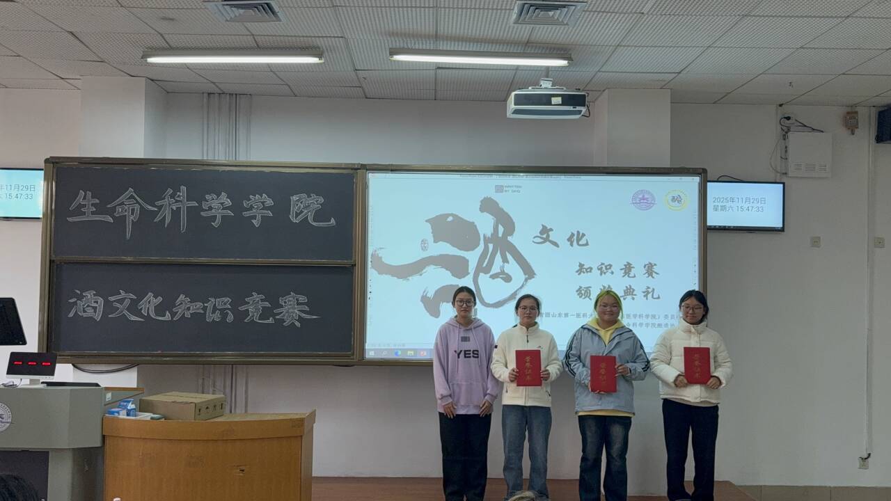 为进一步弘扬传统酒文化,丰富大学生的课外生活。由山东第一医科大学(山东省医学科学院)共青团举办,生命科学学院酿造协会承办的第四届传统酒文化知识竞赛于11月17日下午两点在教学南楼c1002举办。经过初赛的激烈角逐,生命科学学院,运动医学与康复学院,医学信息与人工智能学院,外国语学院成功脱颖而出,进入决赛。